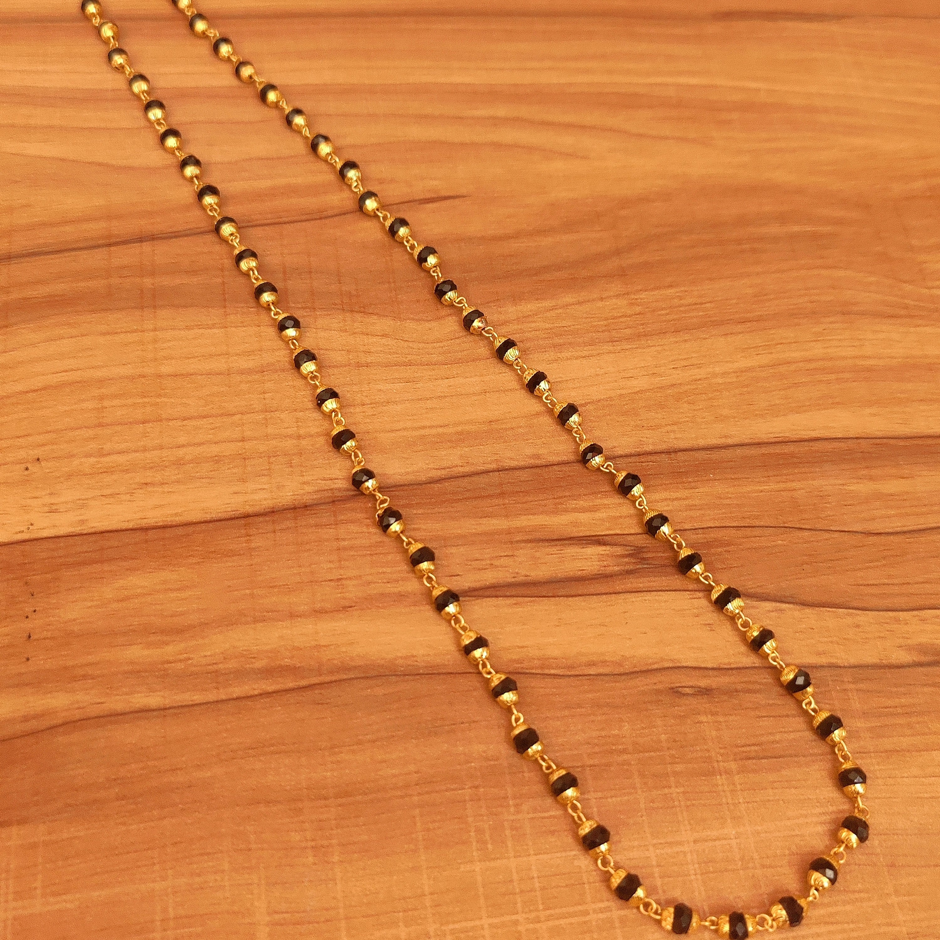The timeless design makes it ideal for everyday use, festive occasions, or as a meaningful gift for brides and married women. The black beads add cultural significance, symbolizing love and commitment, while the gold-plated finish adds a radiant charm.