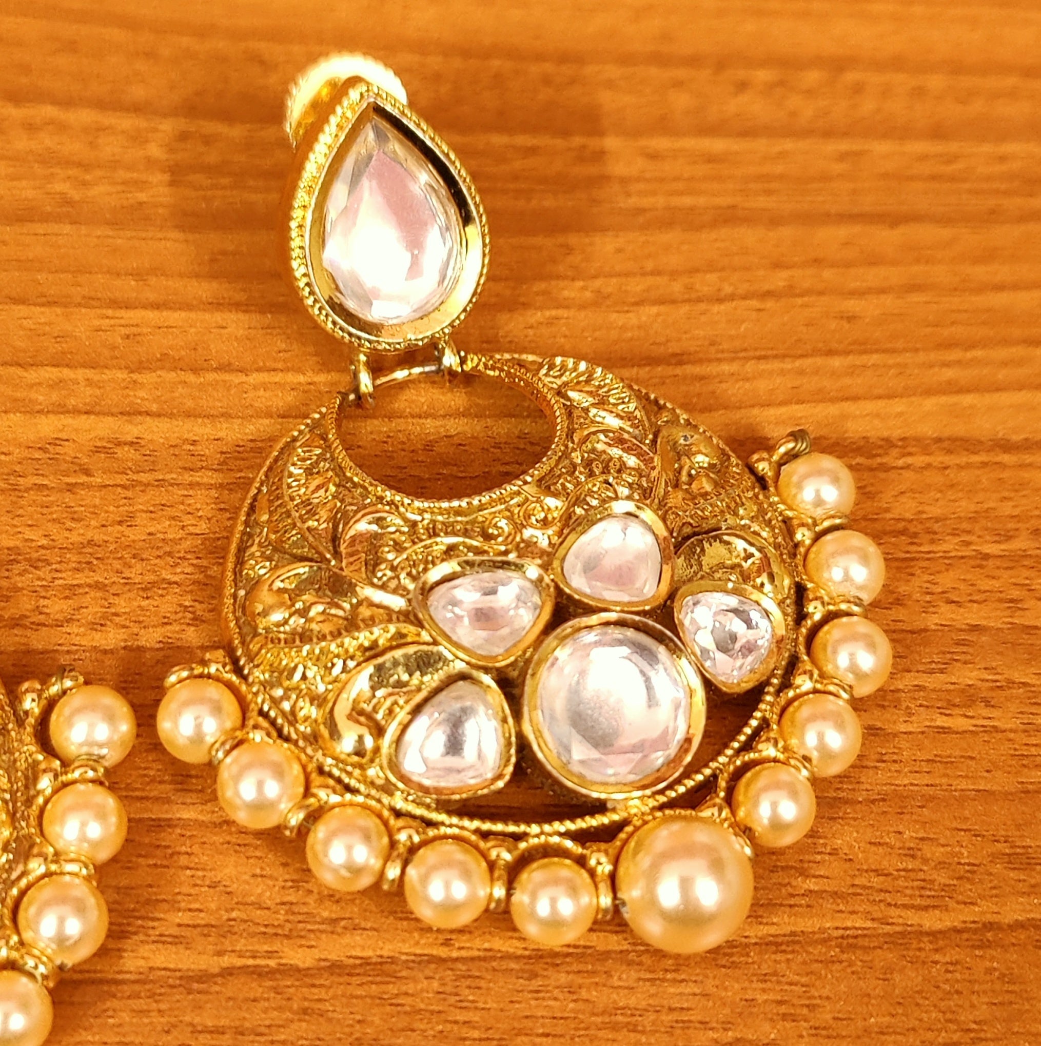 UNCUT KUNDAN POLKI PEARL CHANDBALI EARRINGS