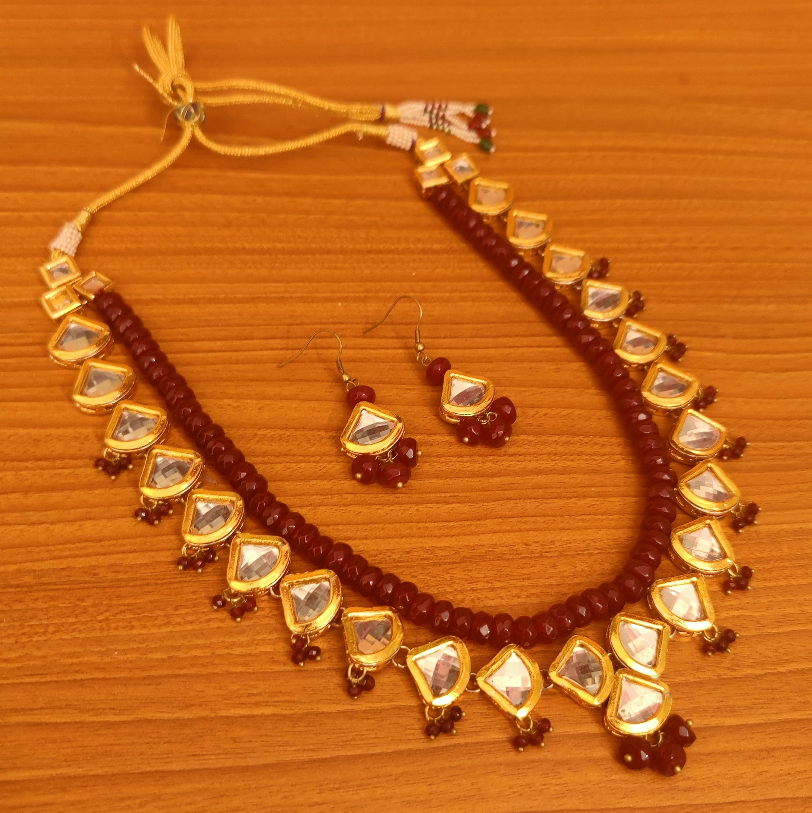 UNCUT SHAPE KUNDAN POLKI RUBY NECKLACE SET