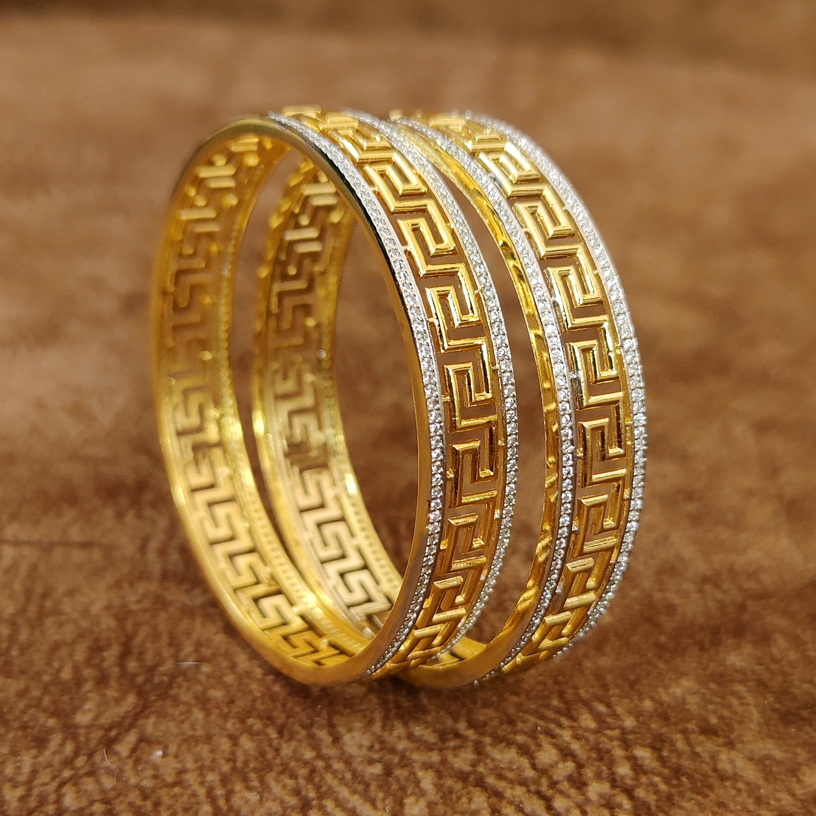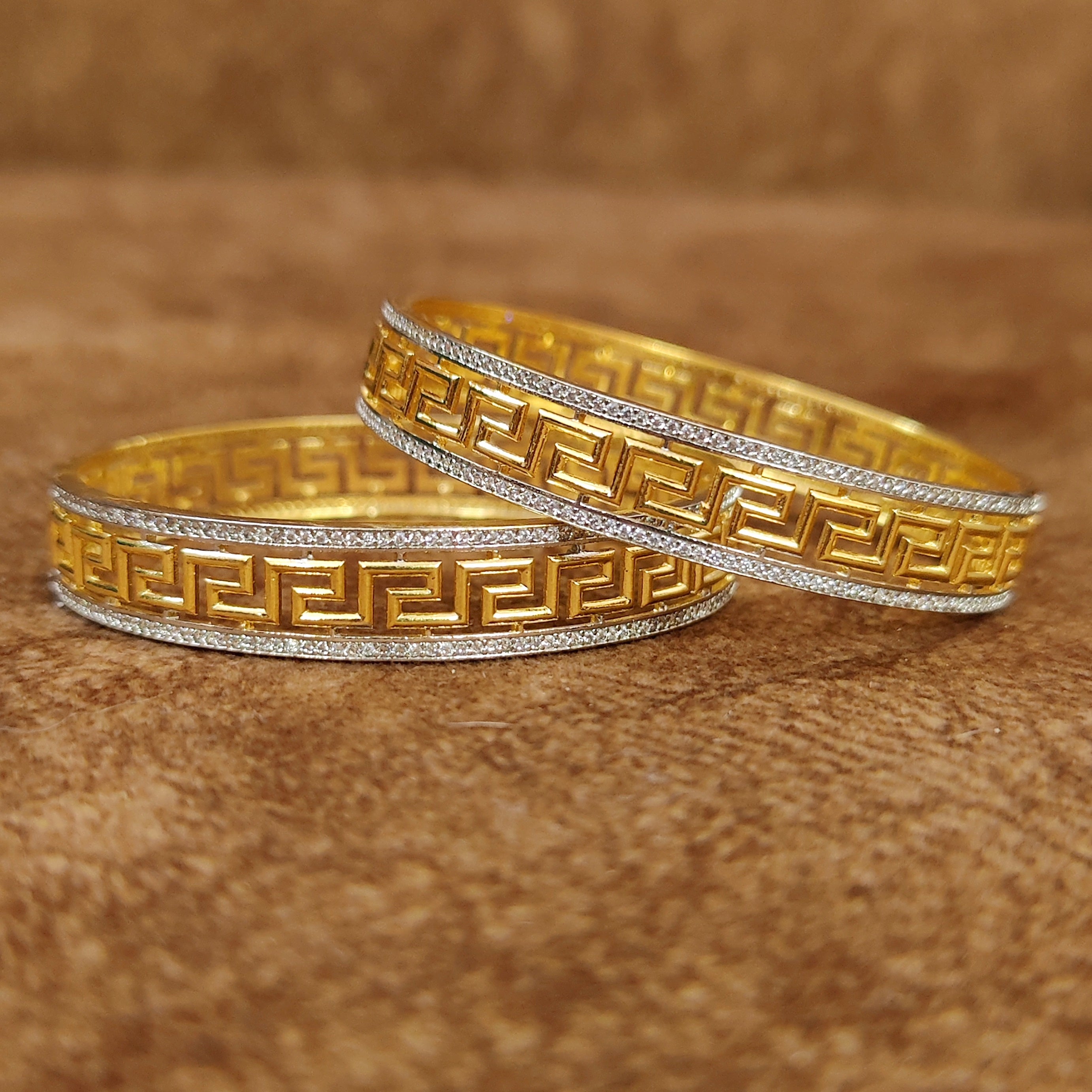 Exude luxury and elegance with the Verasaace Design-Inspired Diamond Lookalike Bangles. Crafted to perfection, these stunning bangles feature intricate designs reminiscent of the iconic Versaace aesthetic, adorned with dazzling diamond-like stones. The high-quality craftsmanship ensures durability and a comfortable fit, making them perfect for weddings, festive celebrations, or special occasions. Pair these bangles with ethnic or contemporary outfits to add a touch of glamour to your ensemble.
