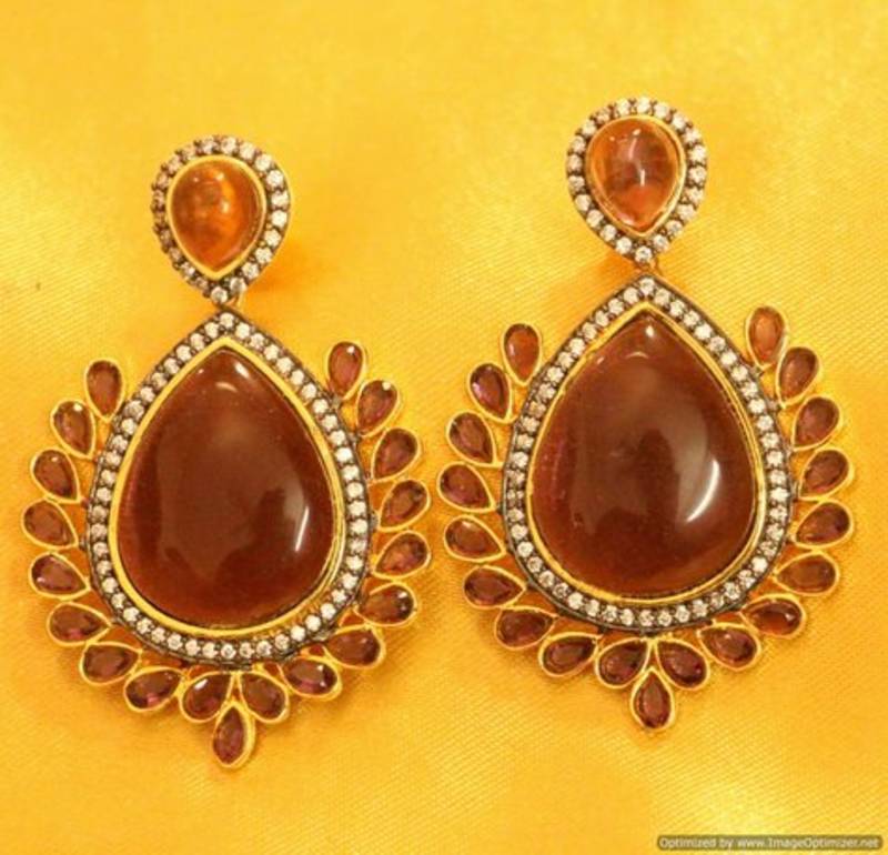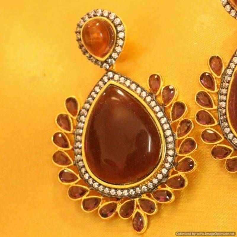 These beautiful earrings are handcrafted in brass alloy with imitation purple onyx and semi precious american diamonds work of very fine quality. These earrings are coated with 18 kt gold polish which give them a unique look . An absolutely stunning piece to own and are very light in weight.