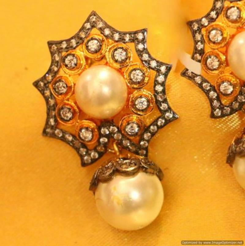 These diamond look studs are handcrafted in silver alloy with imitation pearls & cz stones of very fine quality. These earrings are plated in 18kt gold rhodium plating which gives the design a real jewelry look .