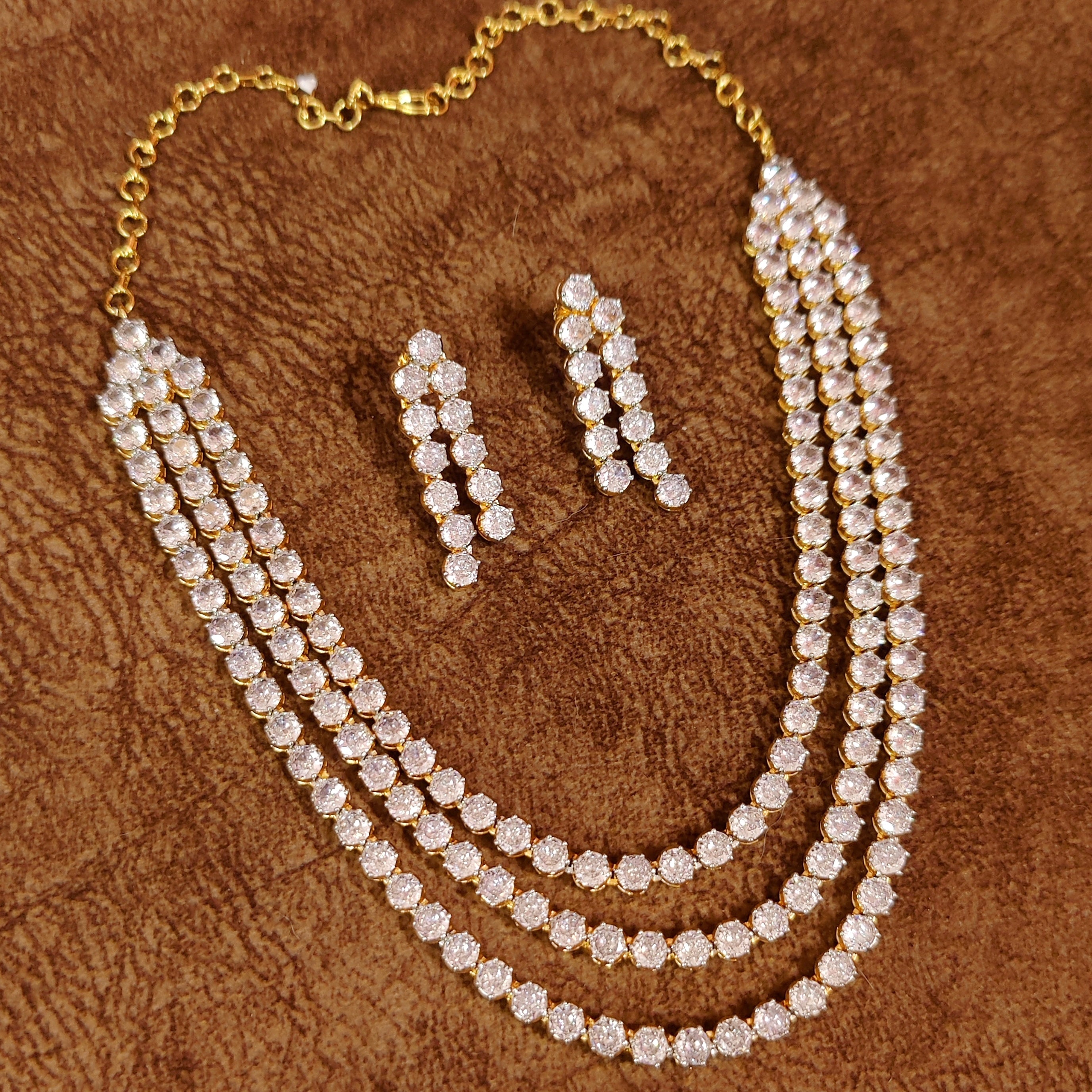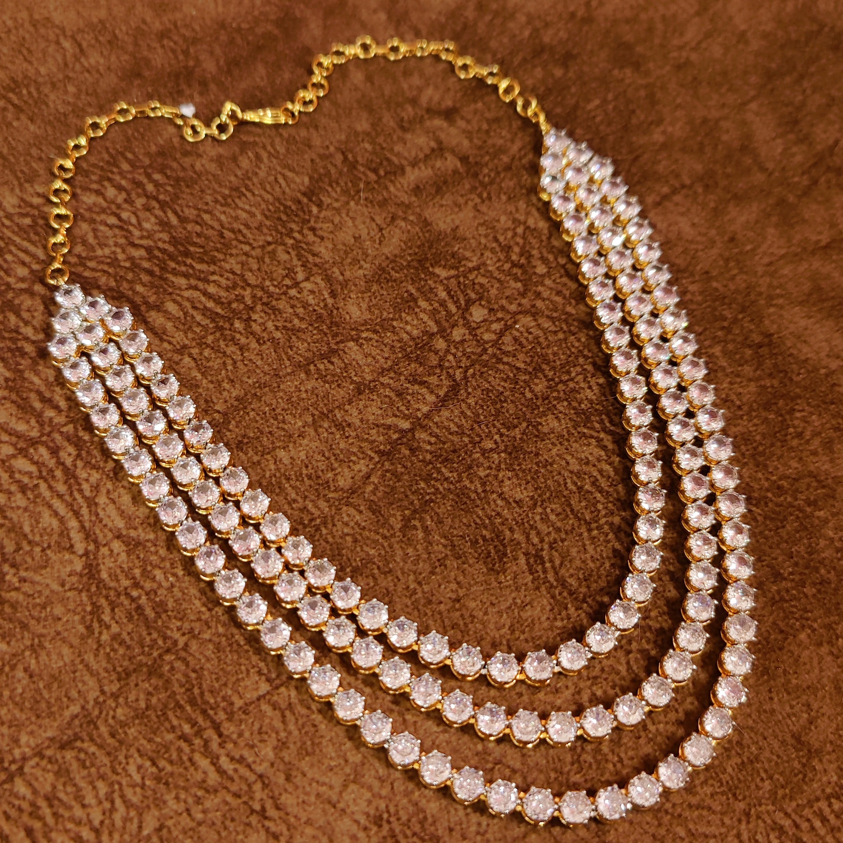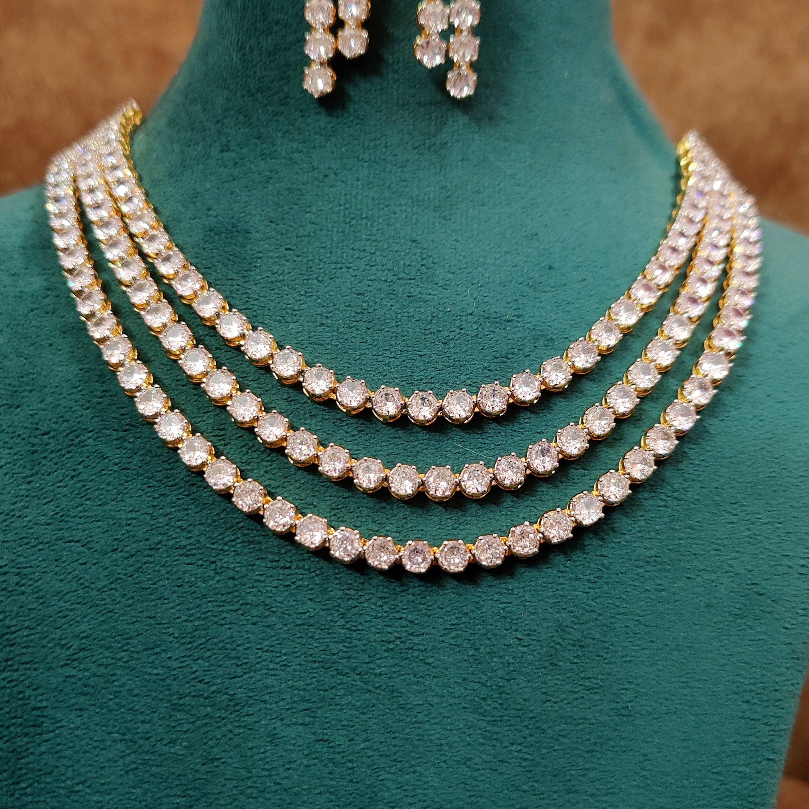 MULTILAYERED SOLITAIRE LOOK GOLD PLATED NECKLACE SET