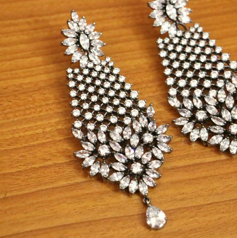 These Earrings Are Handcrafted In Silver Alloy With Imitation Cz Stone Of Very Fine Quality. These Artistic Yet Modern Earrings Are Plated With High Quality Nickel Free Black Silver Rhodium. The Earrings Are Very Light In Weight.