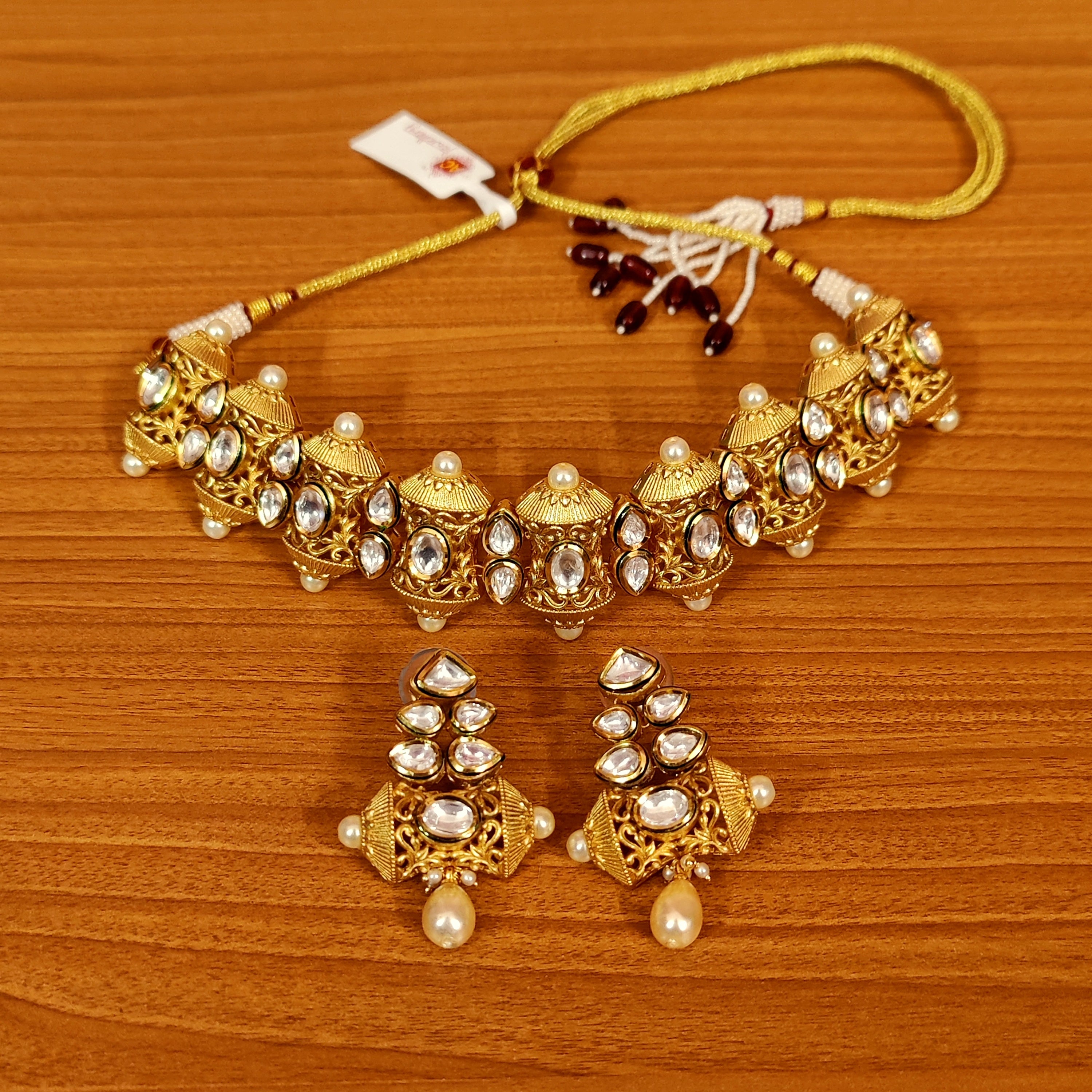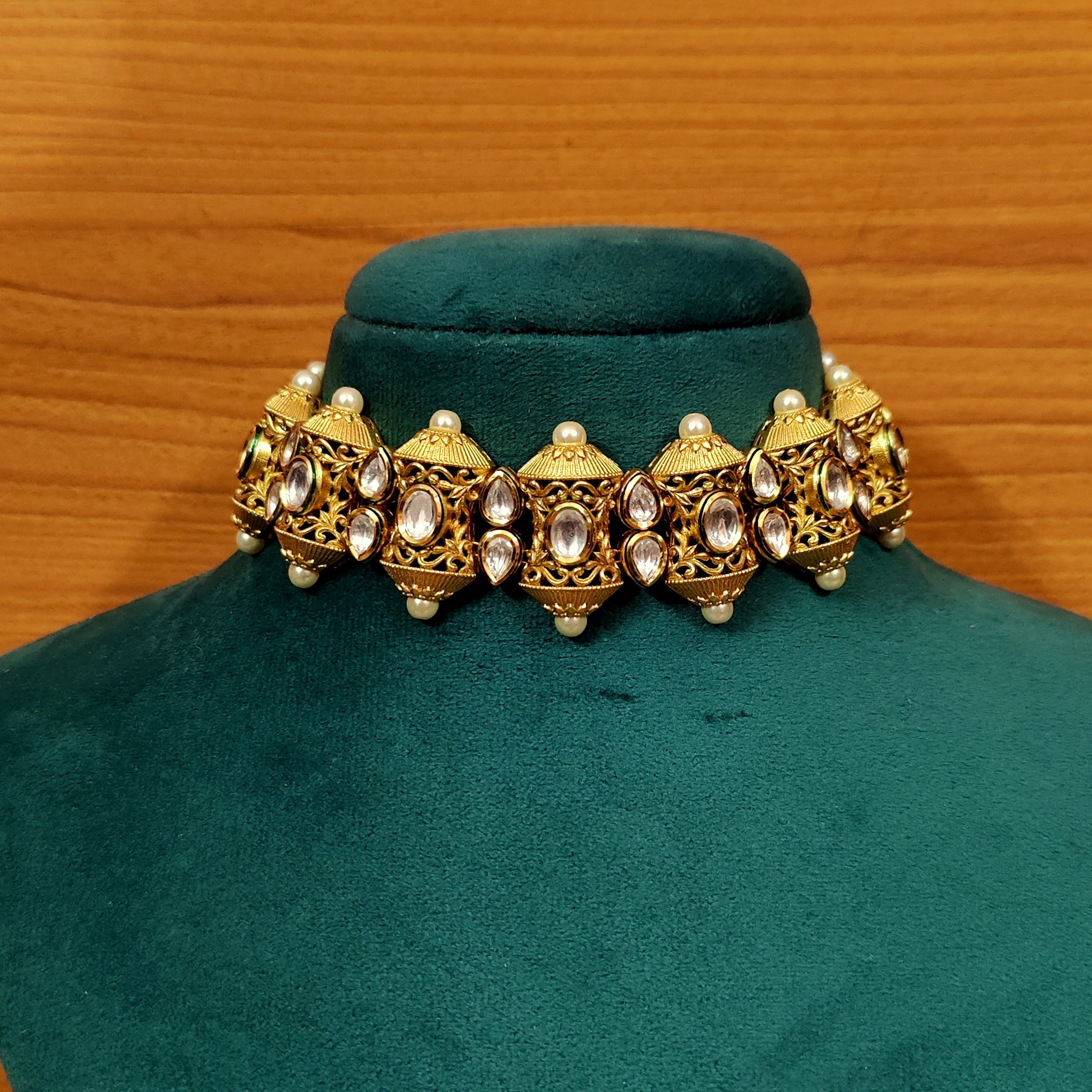 Rajwadi Style Royal Kundan Polki Choker Necklace Set