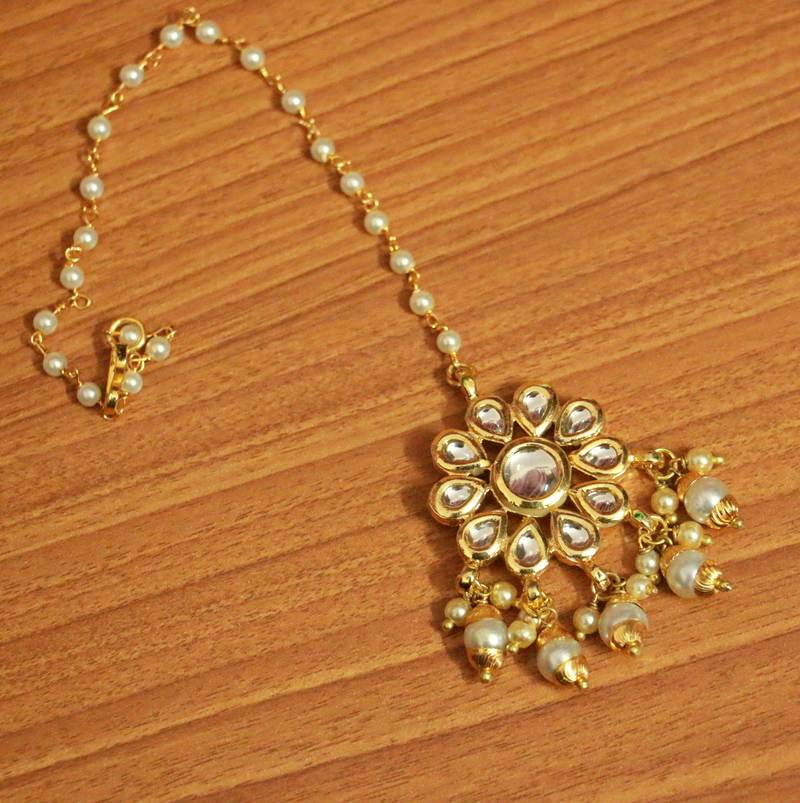 This Maangtika Is Handcarfted In Brass Alloy With Imitation Kundan With Meenakari Work Of Very Fine Quality , The Tika Is Very Light In Weight And Plated With Gold Rhodium To Give It A Real Diamond Look.