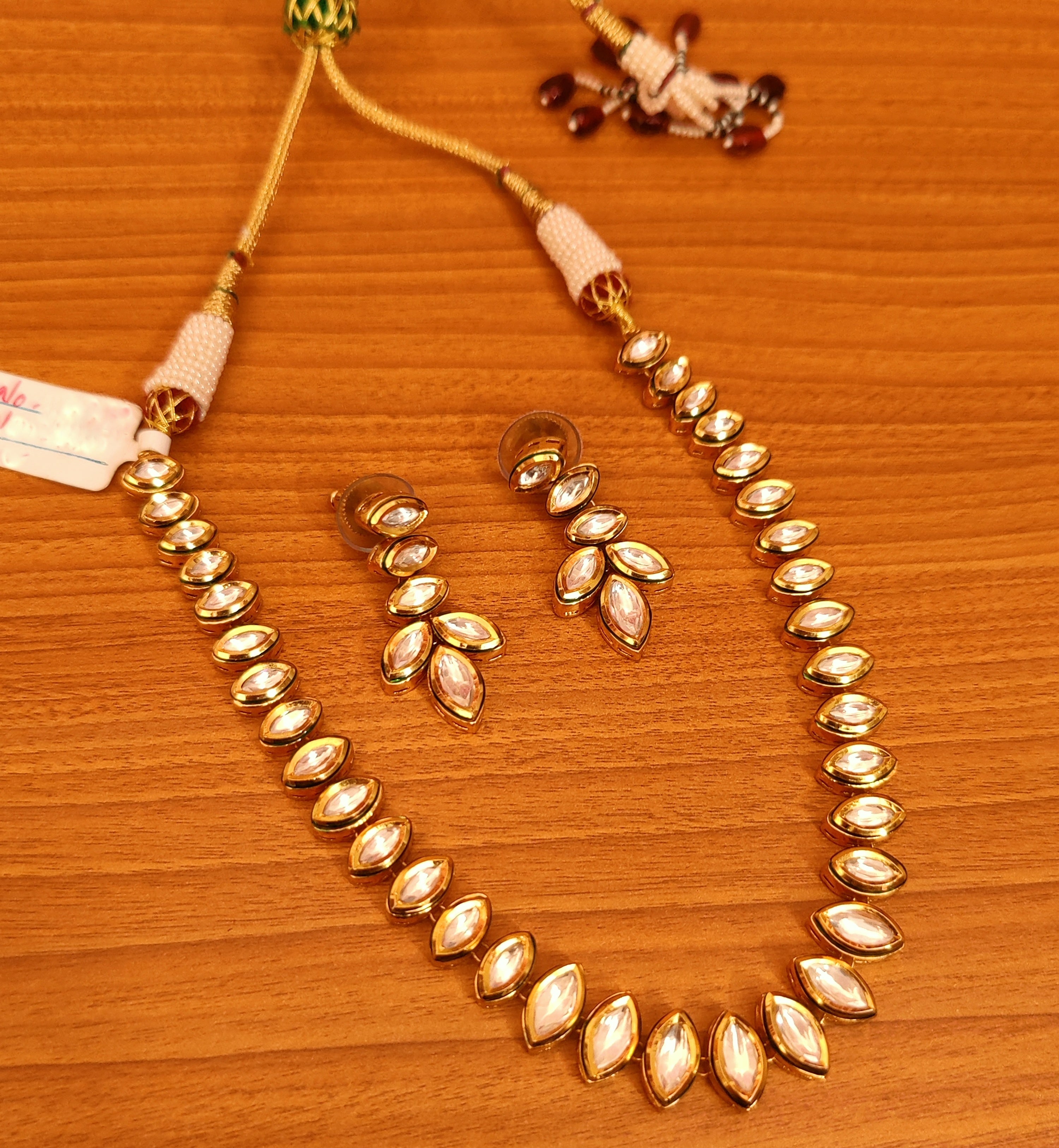 MARQUESE SHAPED KUNDAN MEENAKARI SINGLE LINE NECKLACE SET