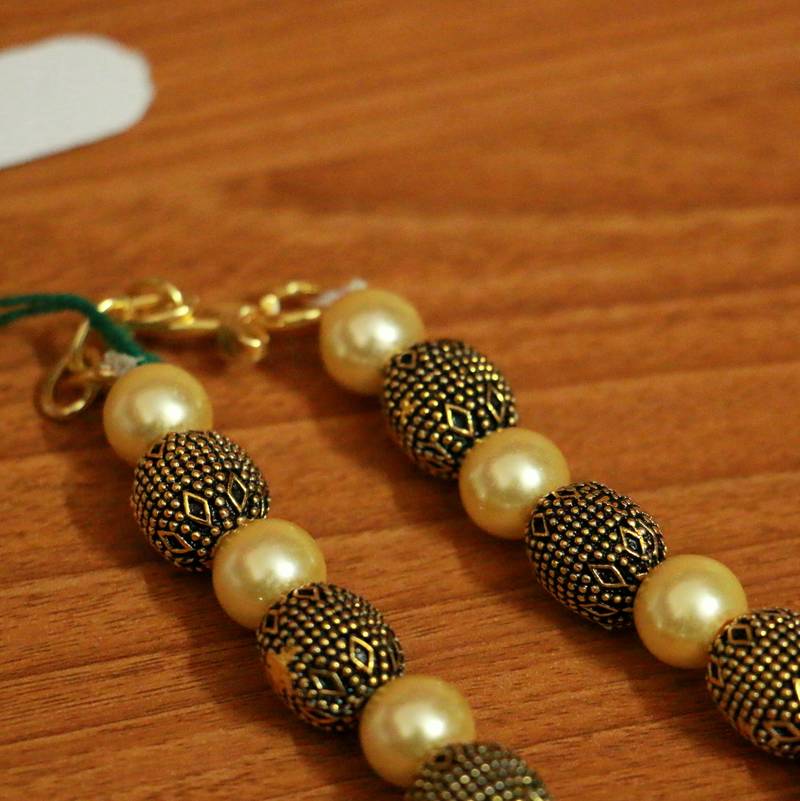 This Ethnic Necklace Is Handcarfted In Pearl & Antique Gold Beads Of Very Fine Quality Layered In Bunch . The Necklace Is Very Light In Weight And Looks Like A Real Pearl Necklace.