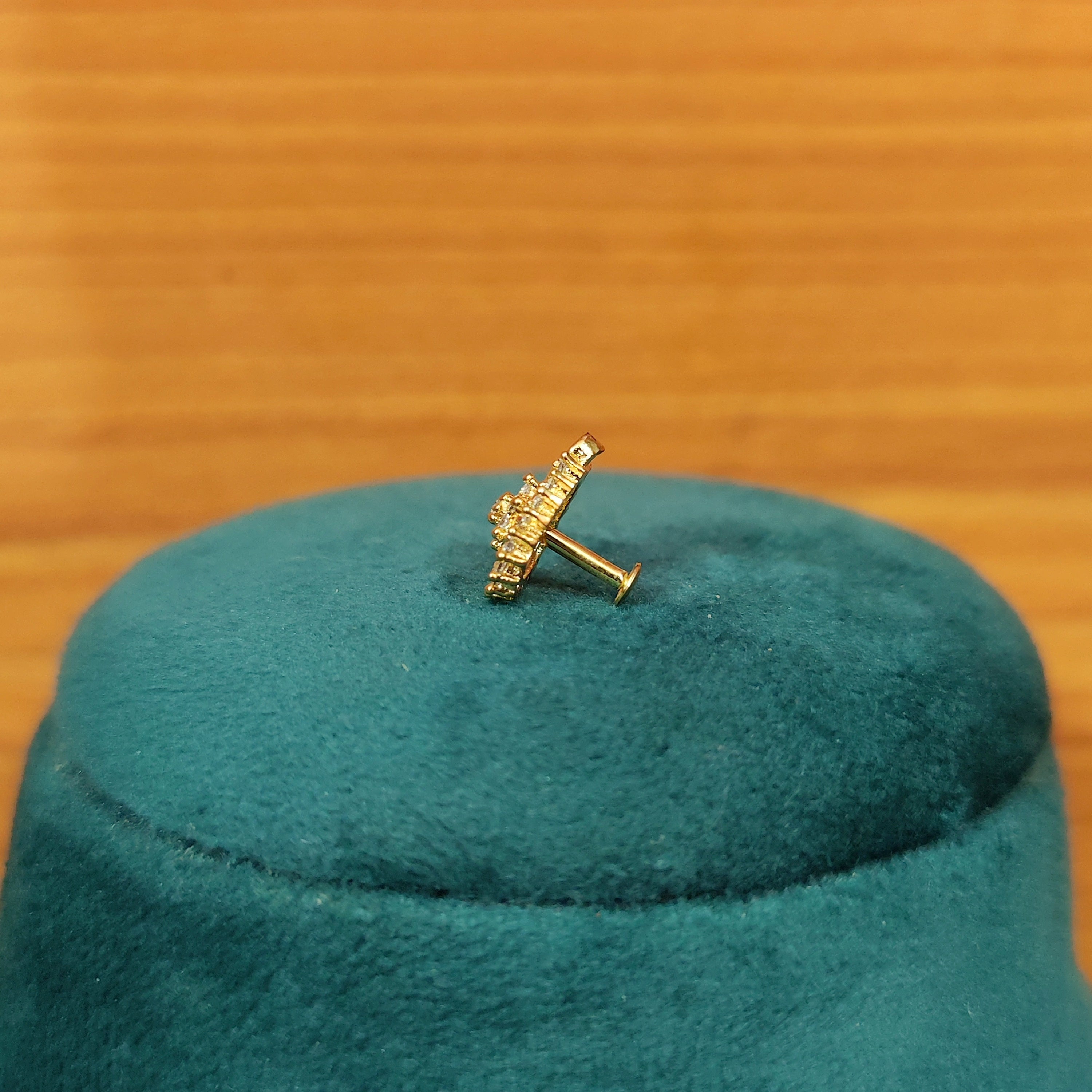 This flower pattern piercing nose ring is handcrafted in silver alloy with imitation ruby colour cz stones of very fine quality , the nose ring is very light in weight and plated with 18kt gold rhodium to give it a real gold look.