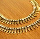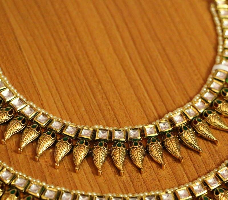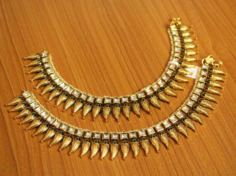 These Anklets Are Handcrafted In Silver Alloy With Kundan Meenakari Work Of Very Fine Quality . These Anklets Are Are Finished In 18 Kt Fine Real Gold Nickle Free Plating Which Gives Them A Real Gold Look . The Paisley Shape Gold Motifs With Meenakari And The Meenakari Work Behind The Anklets Depicts The True Royality .