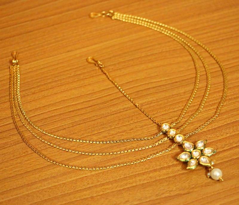 KUNDAN POLKI GOLD LOOK MUTI LAYERED BRIDAL MAANG TIKKA