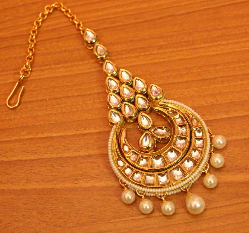 Kundan Meenakari Pearls Wedding Maang Tikka