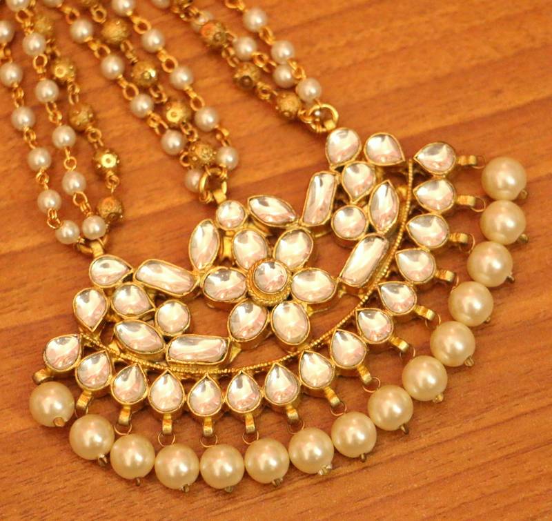 - Material: Brass Alloy, Kundan, Pearls, Yellow Gold