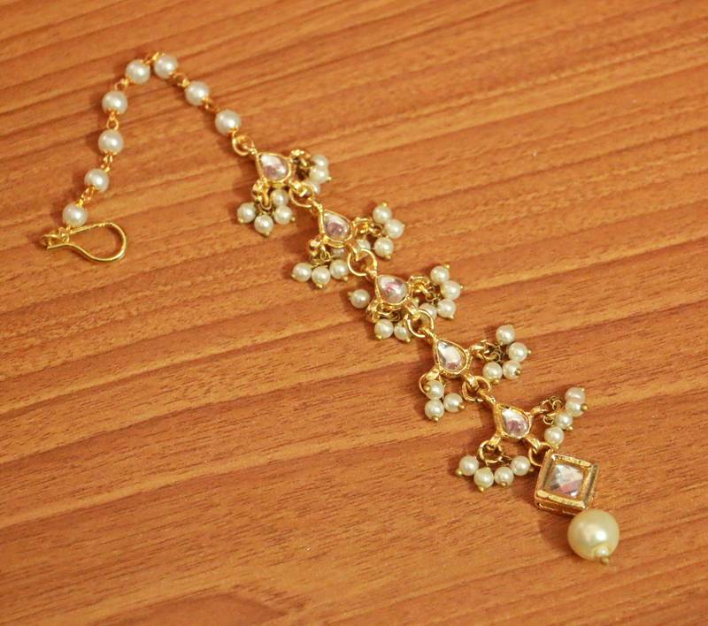 This Beautiful Maang Tikka Is Handcrafted In Silver Alloy With Imitation Pearls & Kundan With Meenakari Work Of Very Fine Quality . The Maang Tikka Is Very Intricate And Very Light In Weight And Is Plated In 18kt Gold Plating As Done On The Real Gold Jewellery.