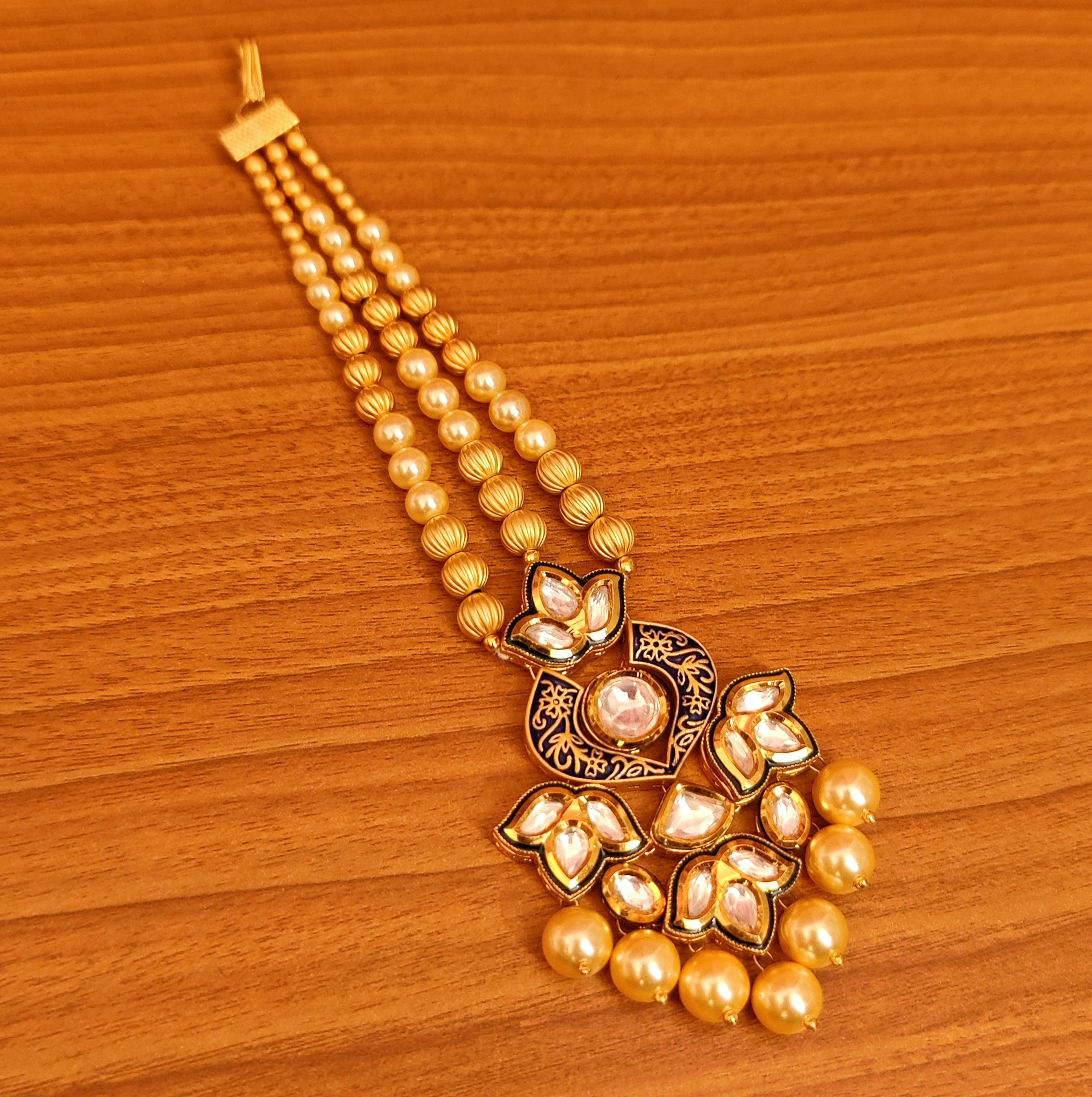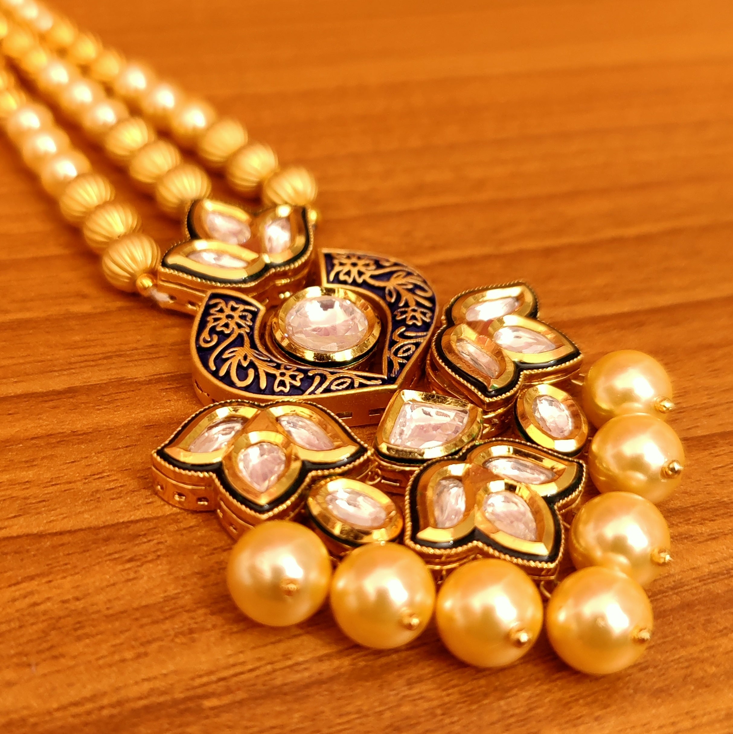 - Material: Brass Alloy, Kundan, Pearls, Matt Gold