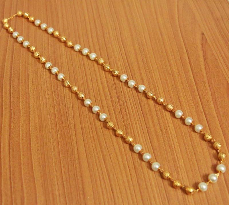 This beautiful necklace is handcrafted in beaded alloy with imitation pearl & polki work of very fine quality . This neckace is coated with 18 kt gold polish which give them a unique look . An absolutely stunning piece to own and are very light in weight.