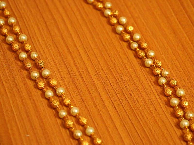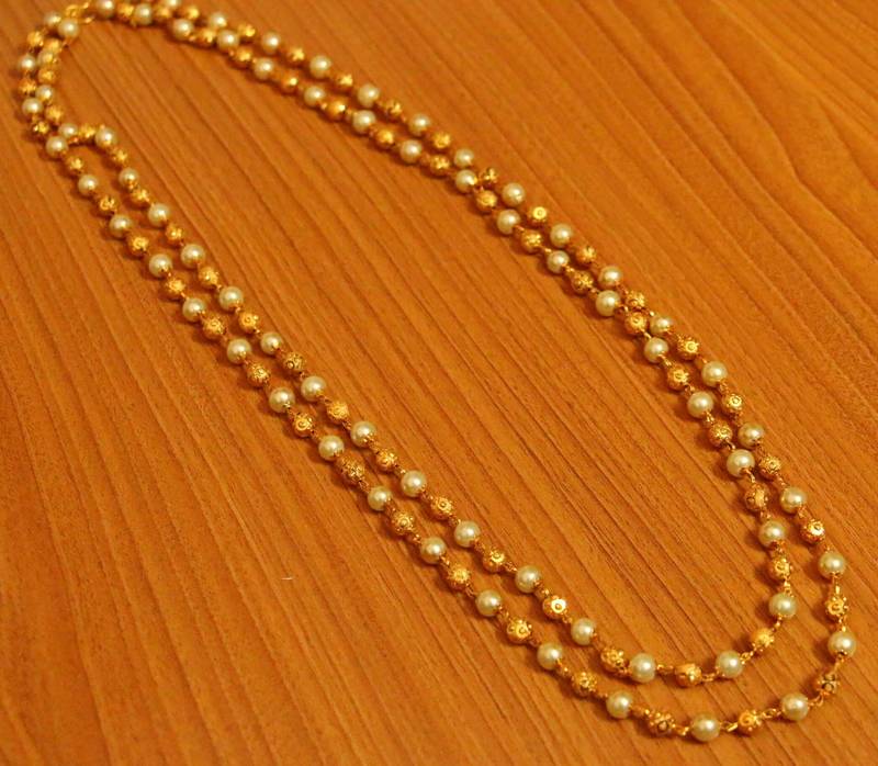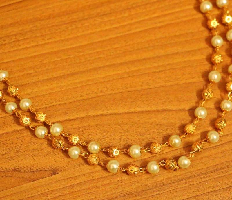 This beautiful necklace is handcrafted in copper alloy with imitation pearls & polki beads work of very fine quality . This necklace is coated with 18 kt gold polish which give them a unique look . An absolutely stunning piece to own and are very light in weight.