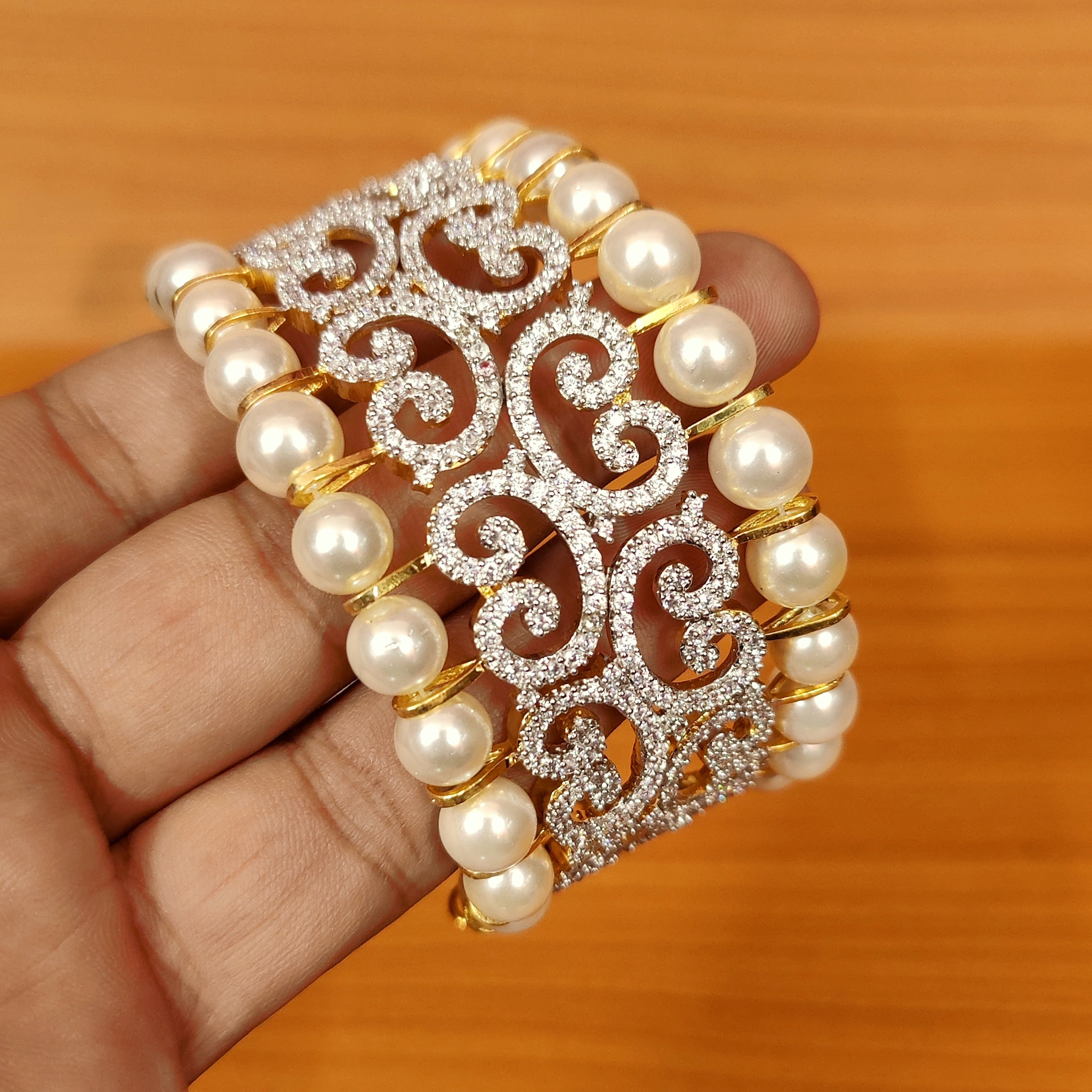 Enhance your jewelry collection with this Real Gold Look Alike Openable Fine Kada from Sanvi Jewels. Crafted with a luxurious gold-plated finish that closely resembles real gold, this elegant kada features an openable design for easy wear. Its sleek and timeless design makes it perfect for weddings, festivals, and special occasions, while the lightweight construction ensures all-day comfort. Add a touch of sophistication to your style with this exquisite kada.