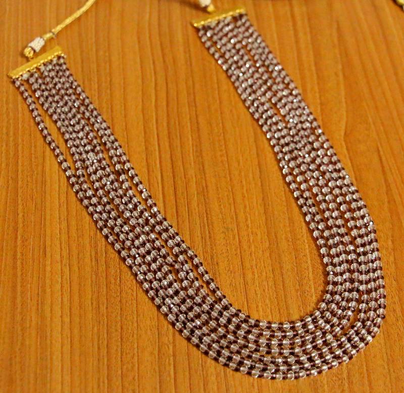This beautiful necklace is handcrafted in brass alloy with imitation swarovski crystal work of very fine quality . This necklace is coated with 18 kt gold polish which give them a unique look . An absolutely stunning piece to own and are very light in weight.