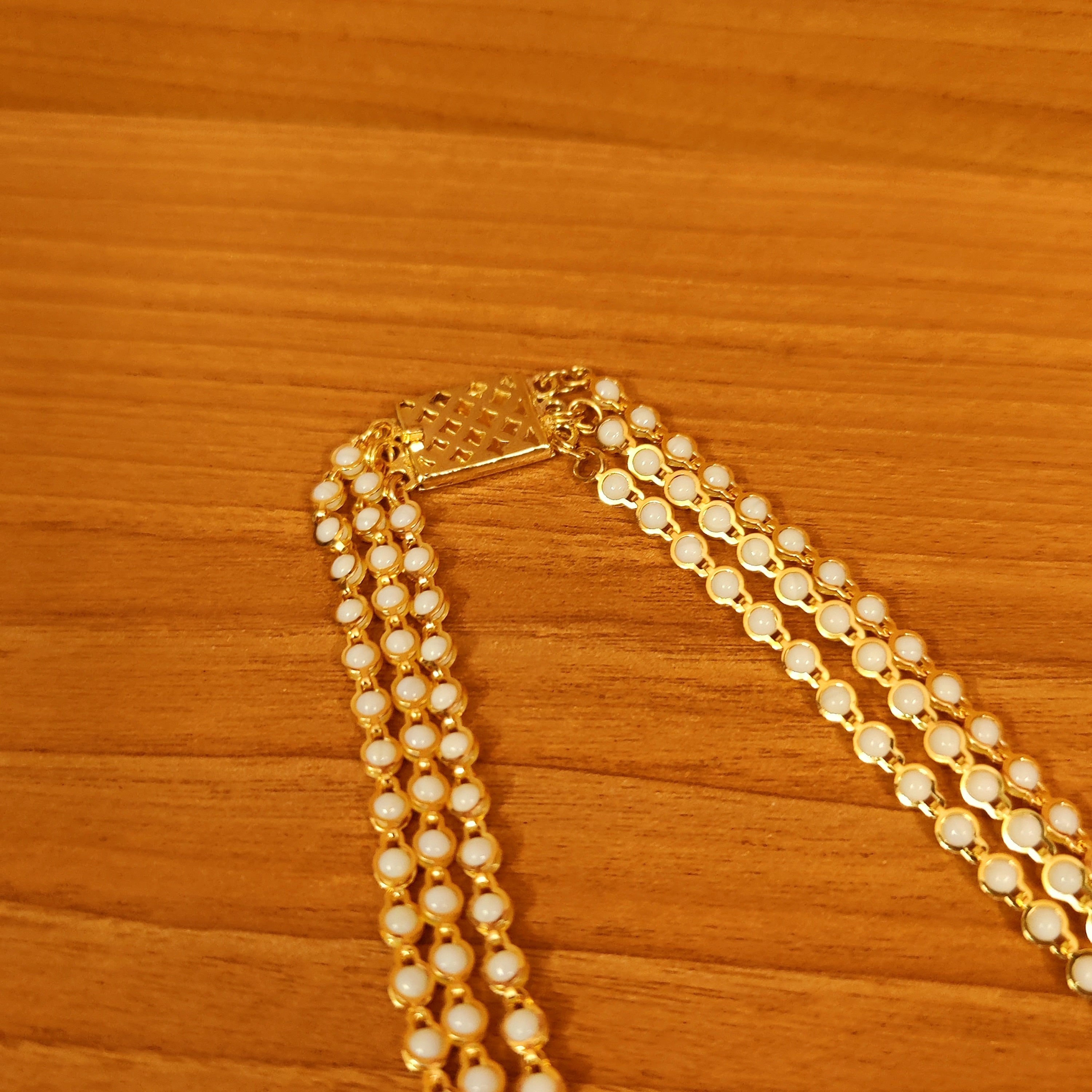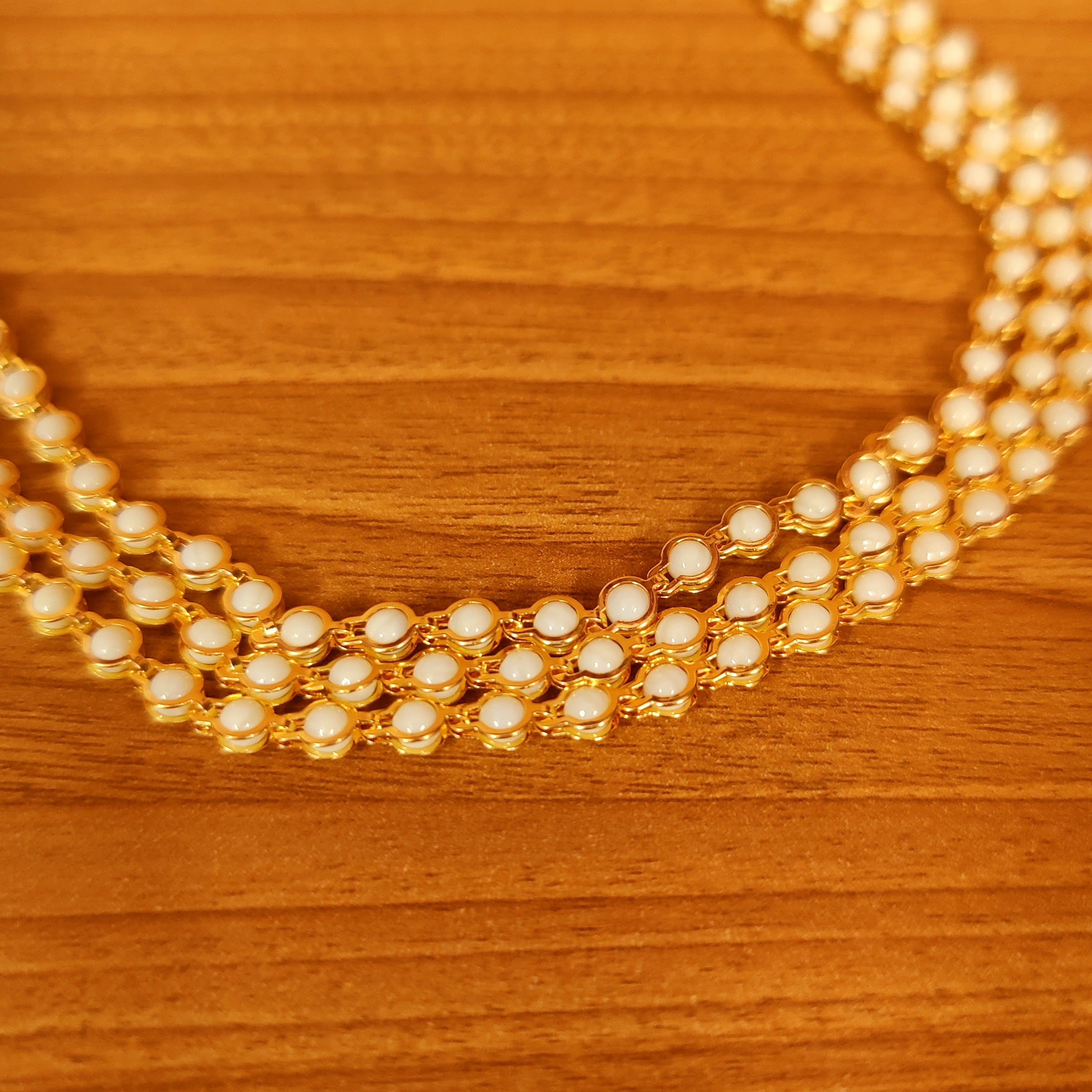 This necklace is handcrafted in brass alloy with imitation gold beads work of very fine quality , this necklace is coated with 18kt nickle free gold plating to avoid skin allergies and its very light in weight .