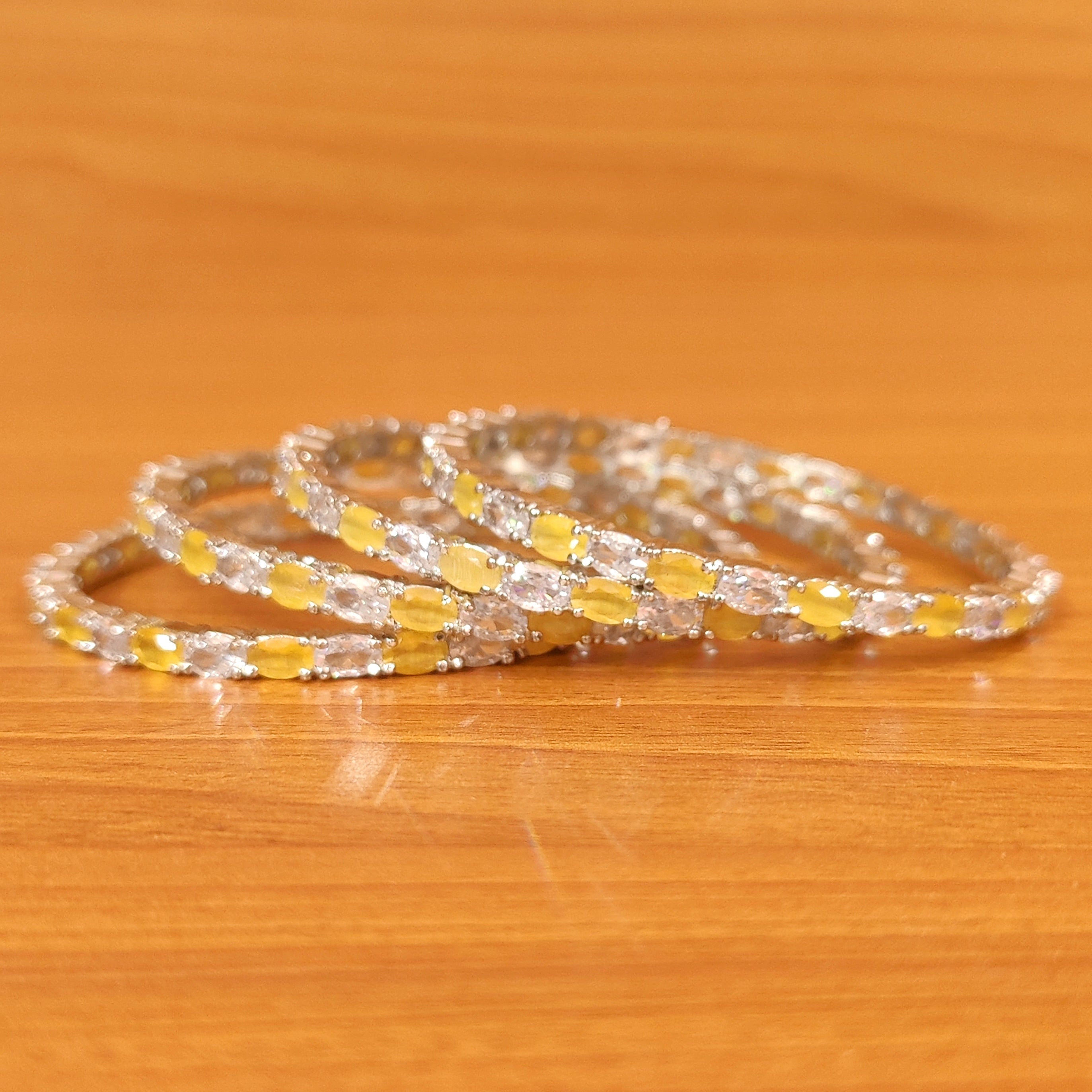 YELLOW CZ & AMERICAN DIAMOND SILVER PLATED BANGLES