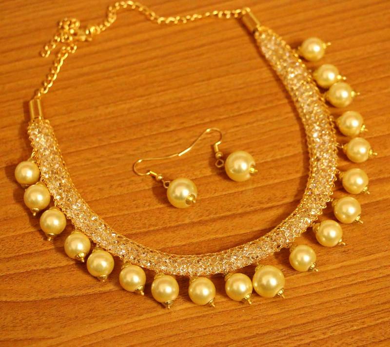 This beautiful necklace set is handcrafted in copper alloy with imitation pearl & zircon work of very fine quality . This necklace set is coated with 18 kt gold polish which give them a unique look . An absolutely stunning piece to own and are very light in weight.
